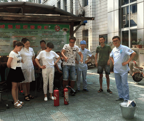 为加强医院消防安全,进一步提高职工消防应急能力,25日下午,市口腔医院在室外门院开展消防演习,全院后勤消防安全员及相关科室医生参加了此次演习。