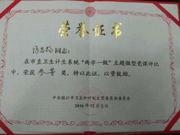 市口腔医院徐志扬同志在市直卫生计生系统“两学一做”主题微型党课比赛中荣获三等奖