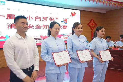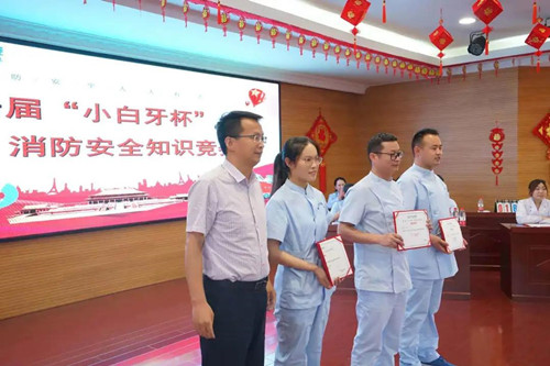 为了认真贯彻落实《中华人民共和国消防法》、《中华人民共和国安全生产法》和《消防安全责任制实施办法》,坚持“安全第一、预防为主、综合治理”的方针,落实人员消防责任,强化医院防火安全,杜绝火灾等消防安全事故,6月5日下午,我院举办了第一届“小白牙杯”消防安全知识竞赛。市卫健委二级调研员许见远,市医疗集团副院长周云出席活动。