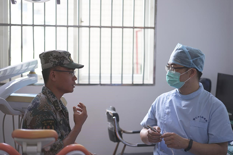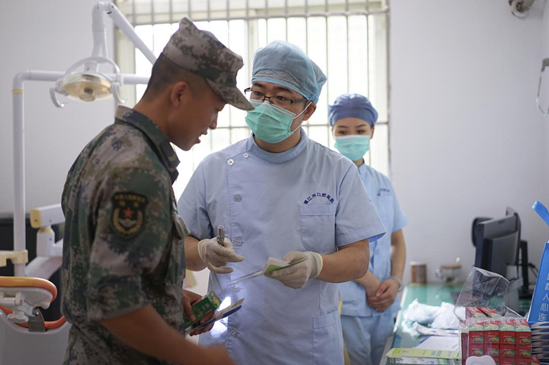 市口腔医院的医务工作人员向73056部队的官兵介绍常见的口腔疾病以及预防口腔疾病的方法等口腔健康知识;为到达现场的官兵进行口腔检查,解答口腔健康问题,并提出针对性的指导意见及治疗方案;还发放了口腔护理用具。