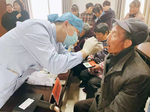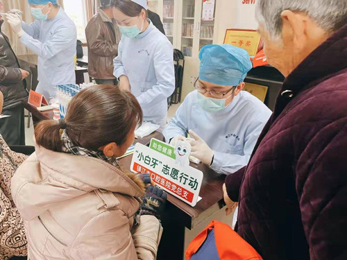 3月17日上午,镇江市口腔医院党总支“小白牙”志愿者外联部走进丹徒区金河镇开展公益口腔知识宣传和义诊活动。