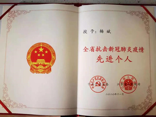 2020年,我院种植修复科副主任杨斌荣获“全省抗击新冠肺炎疫情先进个人”。