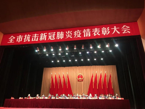 4月29日,镇江市抗击新冠肺炎疫情表彰大会在镇江影剧院隆重举行。镇江市口腔医院种植修复科副主任杨斌、分诊服务台护士朱萍萍作为我院代表参加大会。