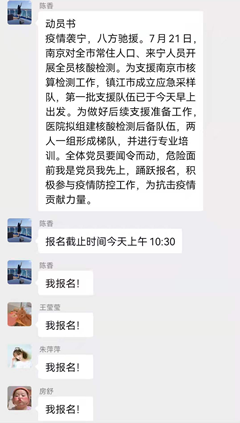 7月22日上午,一条“召集令”刚发布,党员群里党员们一呼百应、争相报名。经过筛选,4名医护人员成功参加第二批应急队,其中2名医护人员为今年的发展对象。