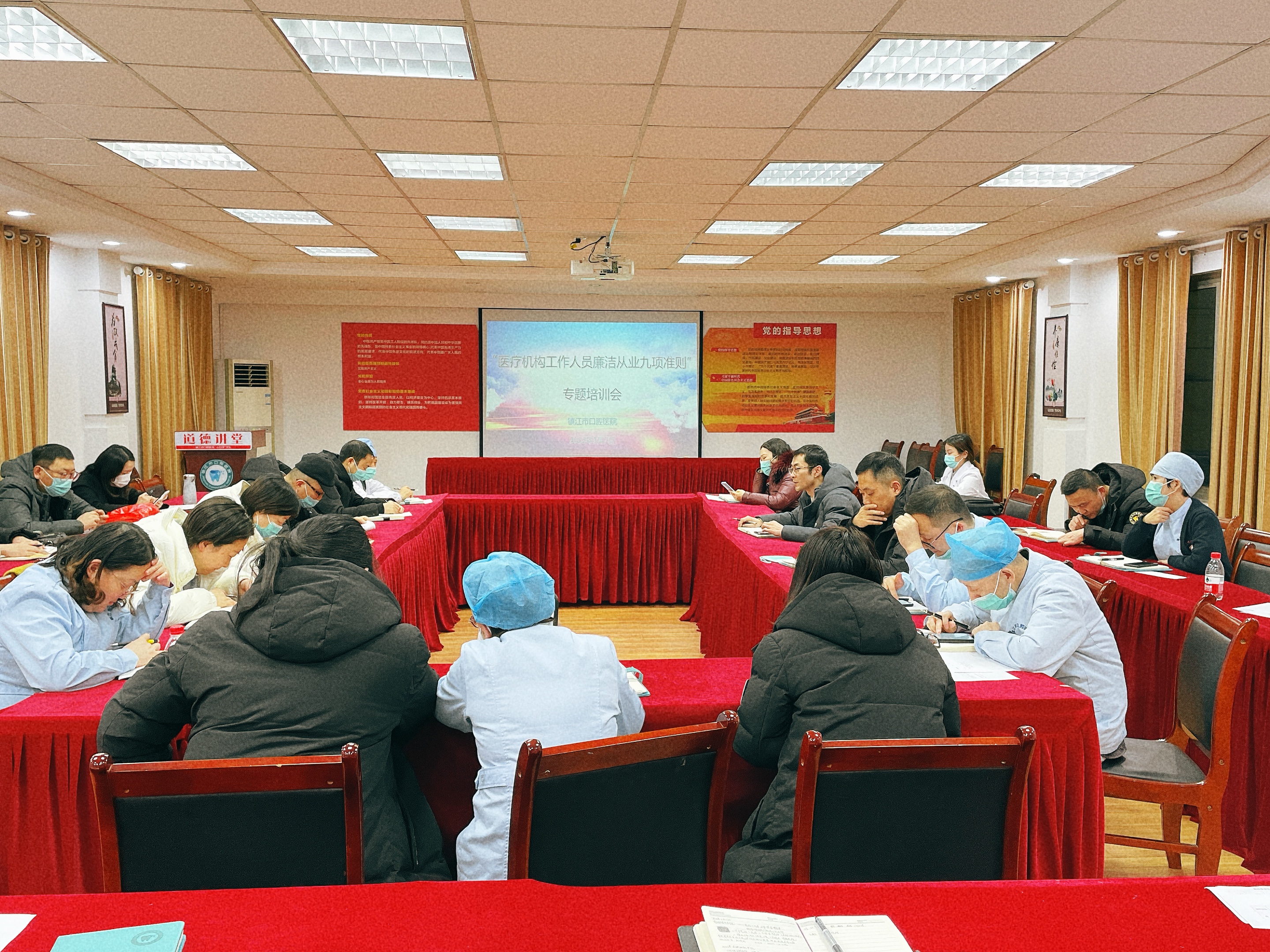 为增强医疗卫生人员的责任感、使命感、荣誉感,规范执业行为,树牢巩固廉洁行医意识,巩固风清气正的院风。1月7日下午,市口腔医院在行政三楼会议室组织科主任开展《医疗机构工作人员廉洁从业九项准则》培训学习。