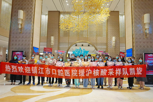 5月26日,援沪核酸采样队隔离期满,援沪方舱队顺利返镇隔离,市口腔医院支援上海的两支队伍圆满完成任务,平安回家。市口腔医院党总支书记、院长顾红政,副书记冯巧云以及医教科、护理部负责人等一行前去迎接。
