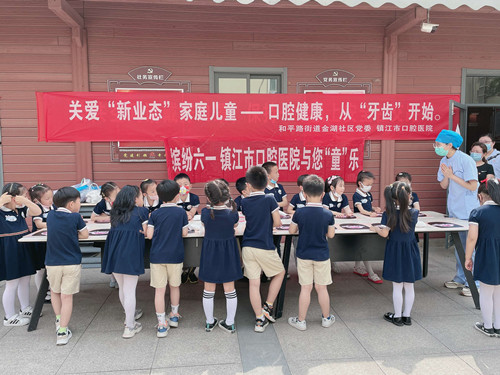 6月1日上午,镇江市口腔医院“小白牙”志愿者走进和平路街道金山水城社区,开展了“缤纷六一,与您‘童’乐”活动,陪伴孩子们度过了一个快乐、健康的六一儿童节。