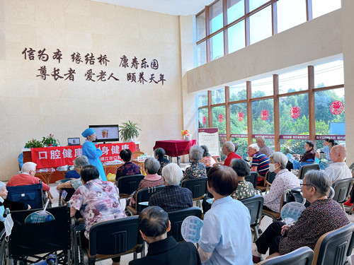 6月2日上午,镇江市口腔医院“小白牙”志愿者走进信源康养老院开展“粽止疫情,端午安康”义诊宣传活动。