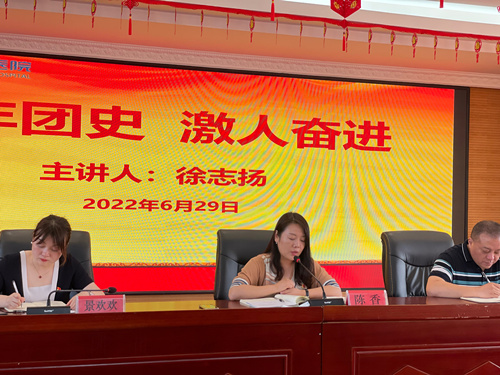 支部组织委员徐志扬以《百年团史 激人奋进》为主题给大家讲了一堂主题鲜明、精彩生动的专题党课。通过讲述共青团百年来的发展史,提出新时代青年重任在肩,要有不畏艰难、锐意进取的创业精神,履职尽责、肯干实干,以实干书写人生,用奋斗镌刻荣光。