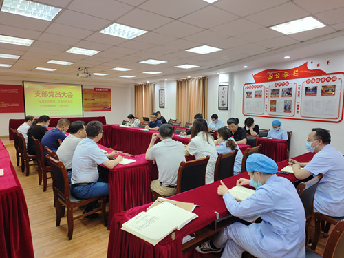 2022年6月29日下午,镇江市口腔医院临床医技党支部在行政三楼会议室召开党员大会。