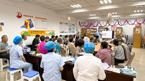 7月8日上午,镇江市口腔医院行政综合党支部联合镇江市大市口街道古城社区开展了一场主题为“如何预防牙周疾病,保护自然牙”的助老讲座。