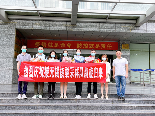 7月16日,五名抗疫队员不负重托,坚守战“疫”圆满完成疫情防控任务,平安归队。7月初,无锡新冠肺炎疫情再次出现,疫情就是命令,白衣就是战袍。镇江市口腔医院坚决贯彻落实上级部门疫情防控安排部署,五名抗疫队员斗志昂扬:“若有战,召必回”,“穿上白大褂,就要像战士的样子”,他们勇挑重担、冲锋在前,不负嘱托、不辱使命,用誓言和行动诠释着“敬佑生命、救死扶伤、甘于奉献、大爱无疆”的崇高精神。驰援无锡期间,五名抗疫队员共累计采样完成34277人次,足迹遍布胶山村、锦安社区、安南村、春光村、大厍头社区、东亭社区、竹园社区等地。