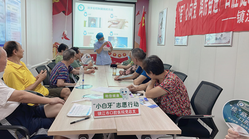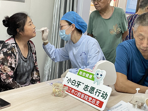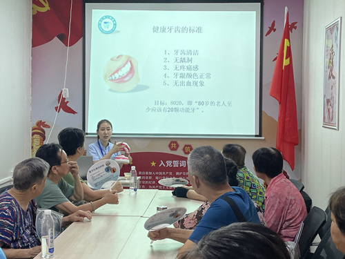 为扎实推进党史学习教育,将学习成果转化成真真切切为民办实事,8月11日上午,市口腔医院行政综合党支部联合“小白牙”志愿者团队走进正东路街道江科大社区,为社区居民进行了口腔健康教育宣教和口腔义诊。