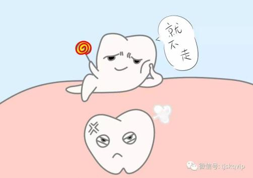 ③在换牙的过程当中,个别乳牙恒牙萌出过迟、恒牙异位萌出、乳牙下沉、乳牙滞留等情况时有出现,造成牙列不齐、牙列拥挤、局部反颌甚至锁颌的情况。