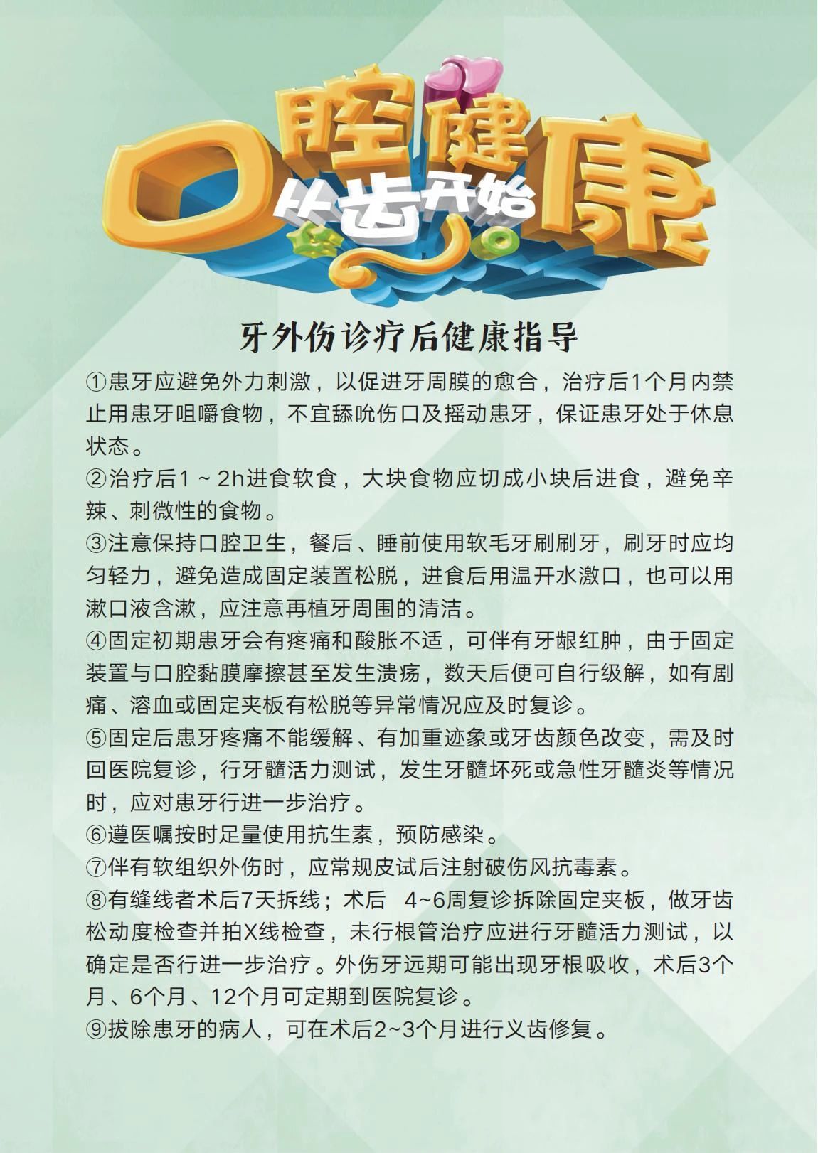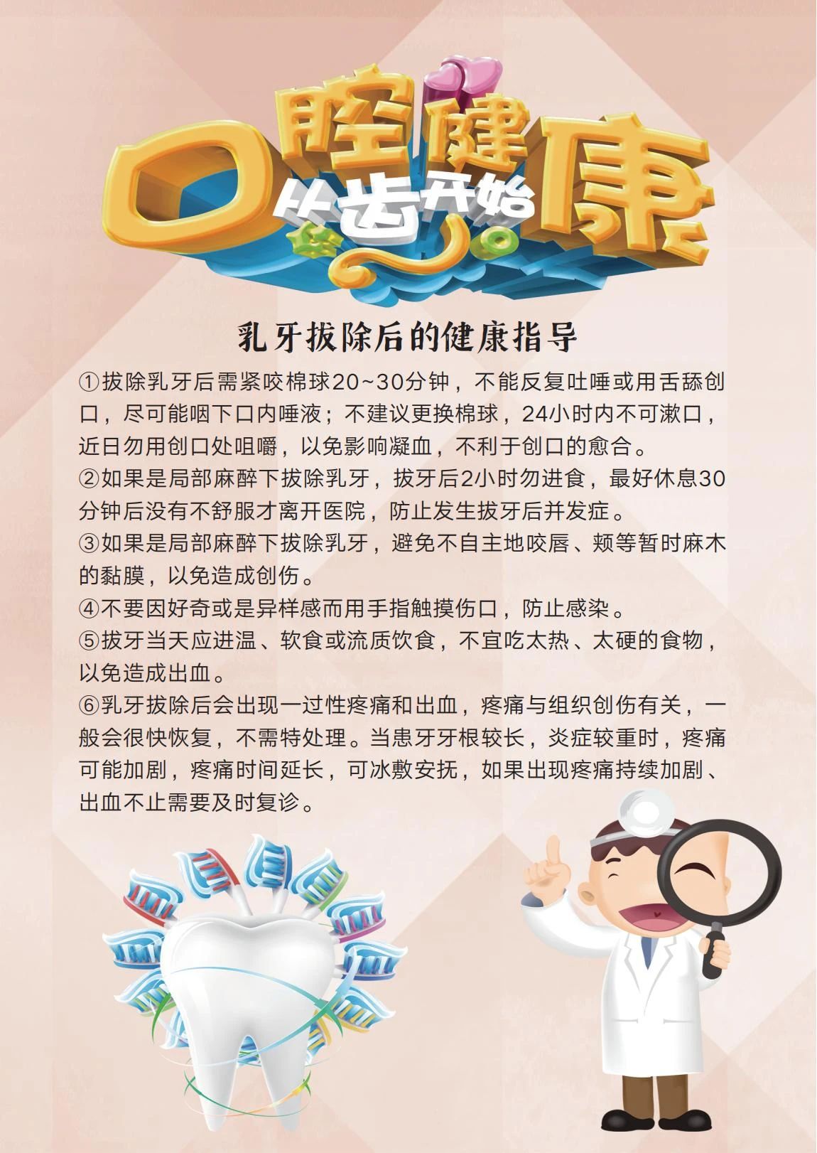 窝沟封闭、乳牙拔除、牙外伤诊疗后的健康指导